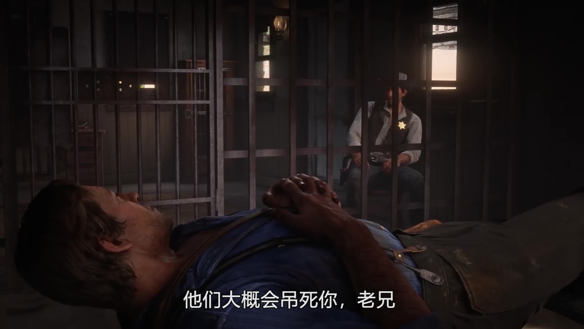 除此之外,与帮派成员的日常交流也是营造沉浸感的重要组成部分。演示中提到,亚瑟和帮派成员每次逃离一个地区,就会搭建营地一起生活,玩家可以抓住这个时机,了解成员们的过去。视频里就有一个镜头,展示了成员分享自己曾经偷鸡被警长抓到,而警长竟然想对他处以绞刑的故事。