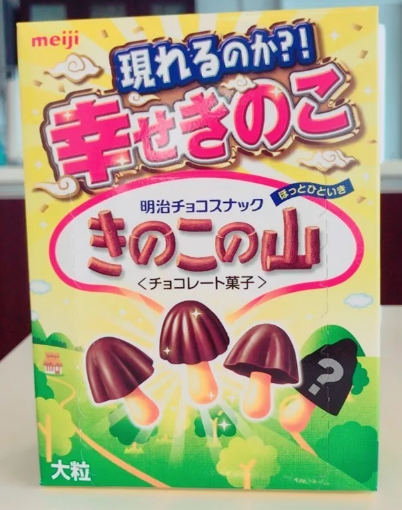 官方也时不时来给斗争加料。比如 2017 年推出的中出叛徒系列零食「快乐蘑菇山」,在蘑菇里面甚至能发现混入其中的竹笋: