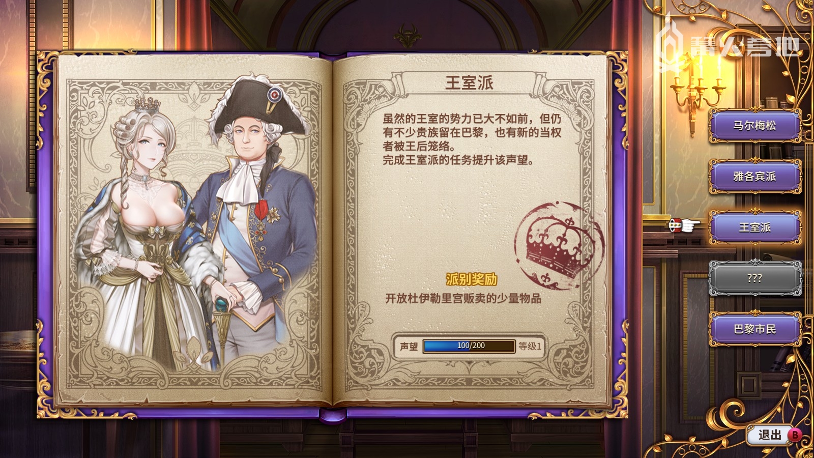 除了「战棋」内容,游戏的另一个重要系统是「派系」—— 毕竟我们是在激进动荡的法国十八世纪末期。就像在《魔兽世界》里做任务刷声望,提升各个派系好感度的方法就是替人家办事儿,或者帮人家说话。声望提升的好处也很直接:装备道具,额外任务,特殊技能等等。只是目前我的进度刚刚过半,各系声望是否会对结局产生影响暂不可知。