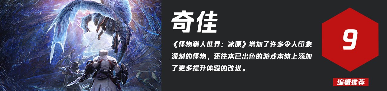《怪物猎人世界:冰原》是一部绝对狂野的 DLC,不仅有许多全新或回归的强大怪物,还在本已出色的游戏本体上添加了更多改进。单看它包含的丰富内容,《冰原》就可与一部正统续作相媲美,虽然它有时过于依赖熟悉怪物的亚种/变种来进行填充(不过对于老玩家而言,这并不会构成太大困扰)。《冰原》的全程都是如此充满新意,令人兴奋不已,并巩固了《怪物猎人:世界》本世代最佳游戏之一的霸主地位。