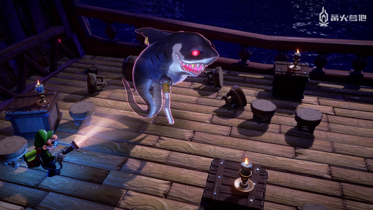《路易吉洋楼 3》的其中一个 BOSS 是鲨鱼幽灵怪,它一直呆在海盗船上,对路易吉发起攻击