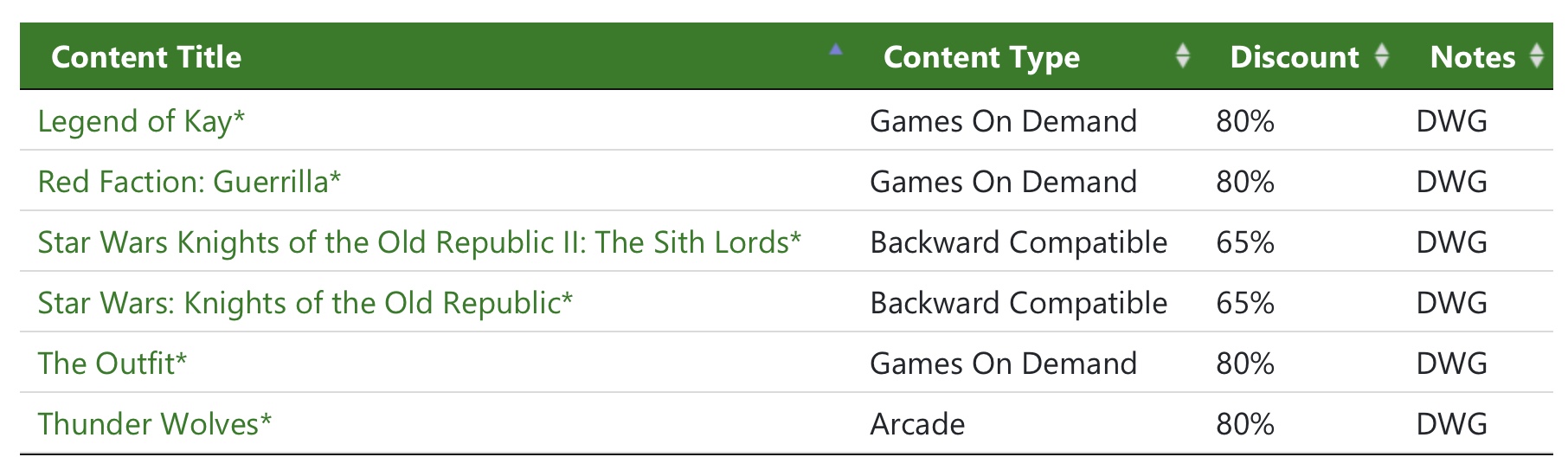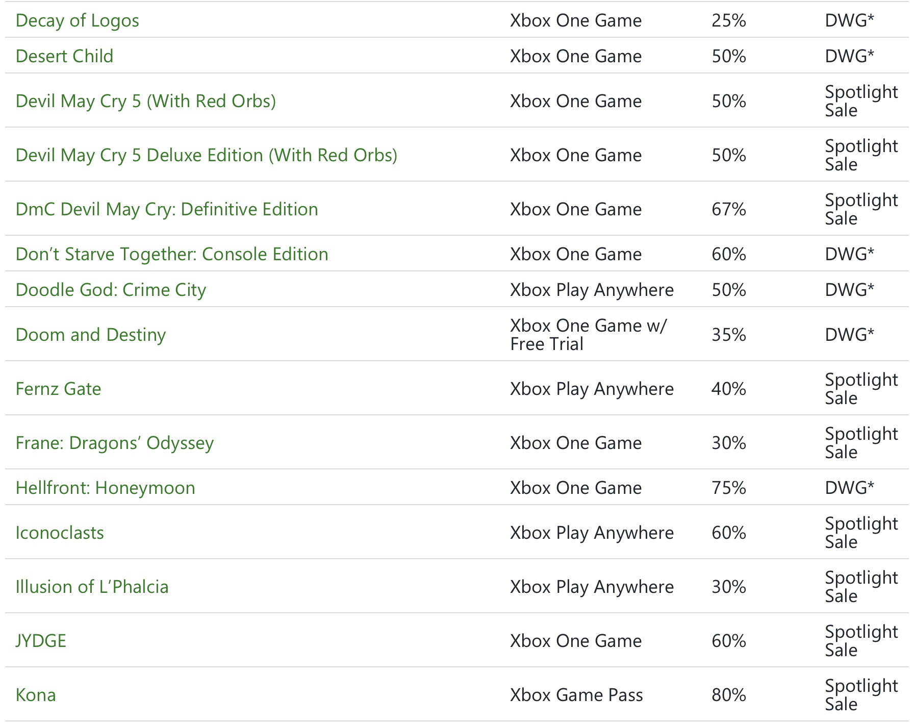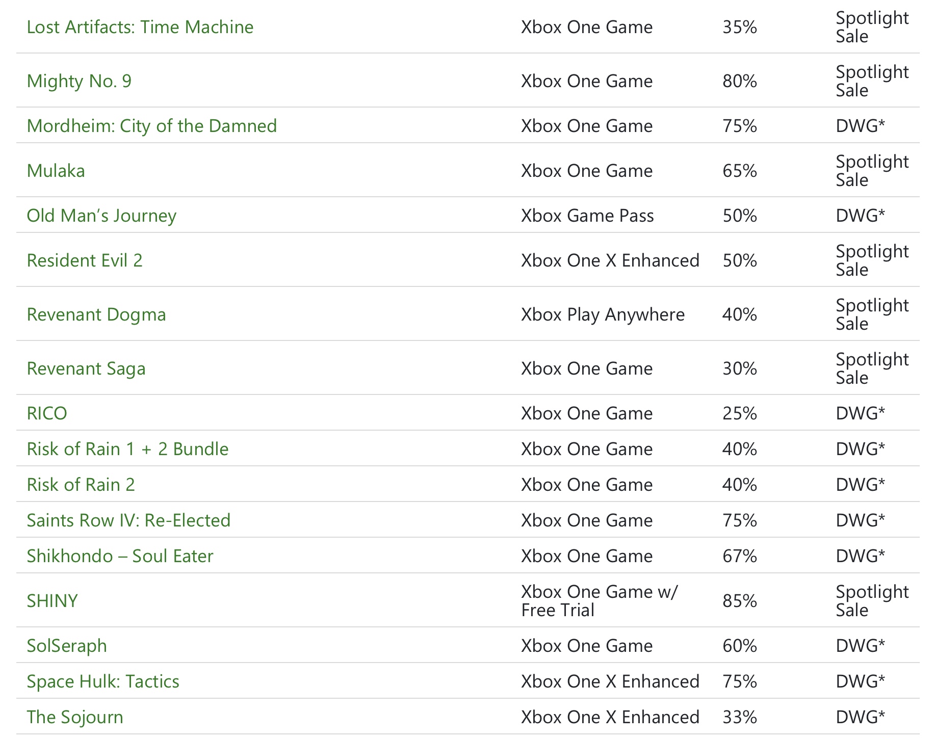 本周 3 月 30 日 — 4 月 6 日 Xbox 金会员游戏促销阵容公布。这其中 Xbox One 港服优惠游戏包括:《生化危机 2:重制版》(5 折)、《克苏鲁的呼唤》(2.5 折)、《 雨中冒险 2》(6 折)、《流血 2》(2.5 折)、《DmC:鬼泣 终极版》(3.3 折)等游戏。Xbox 360 方面的折扣游戏包括:《凯之传奇》(2 折)、《红色派系:游击战队》(2 折)等游戏低价促销中。
