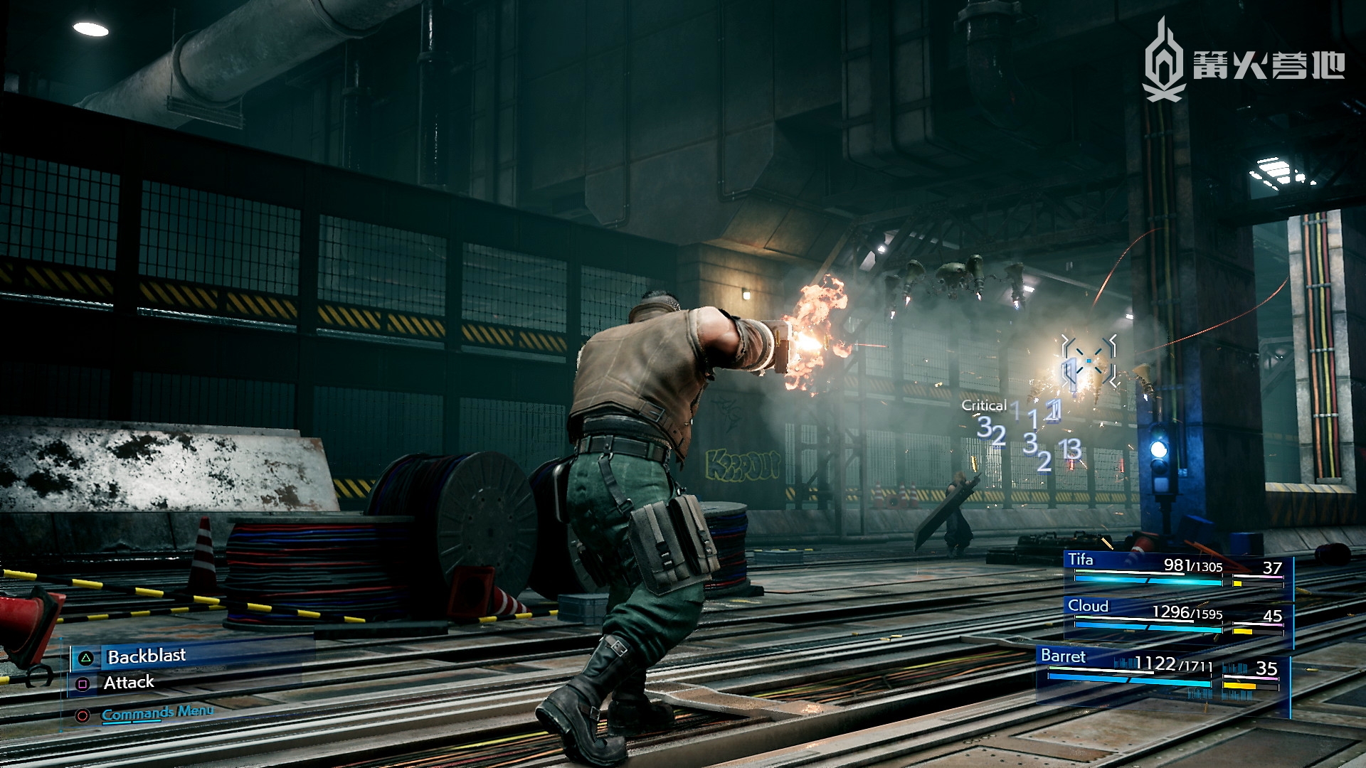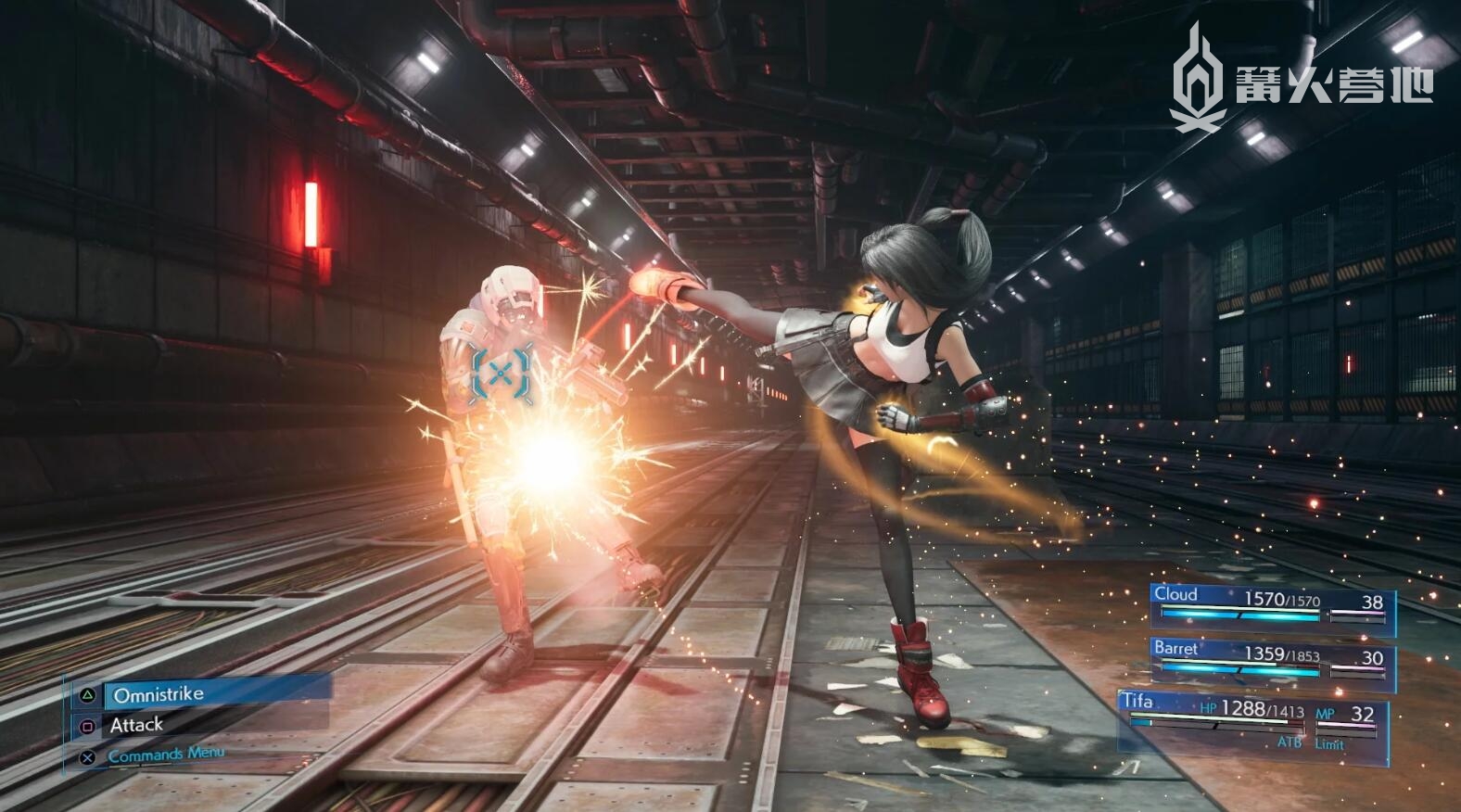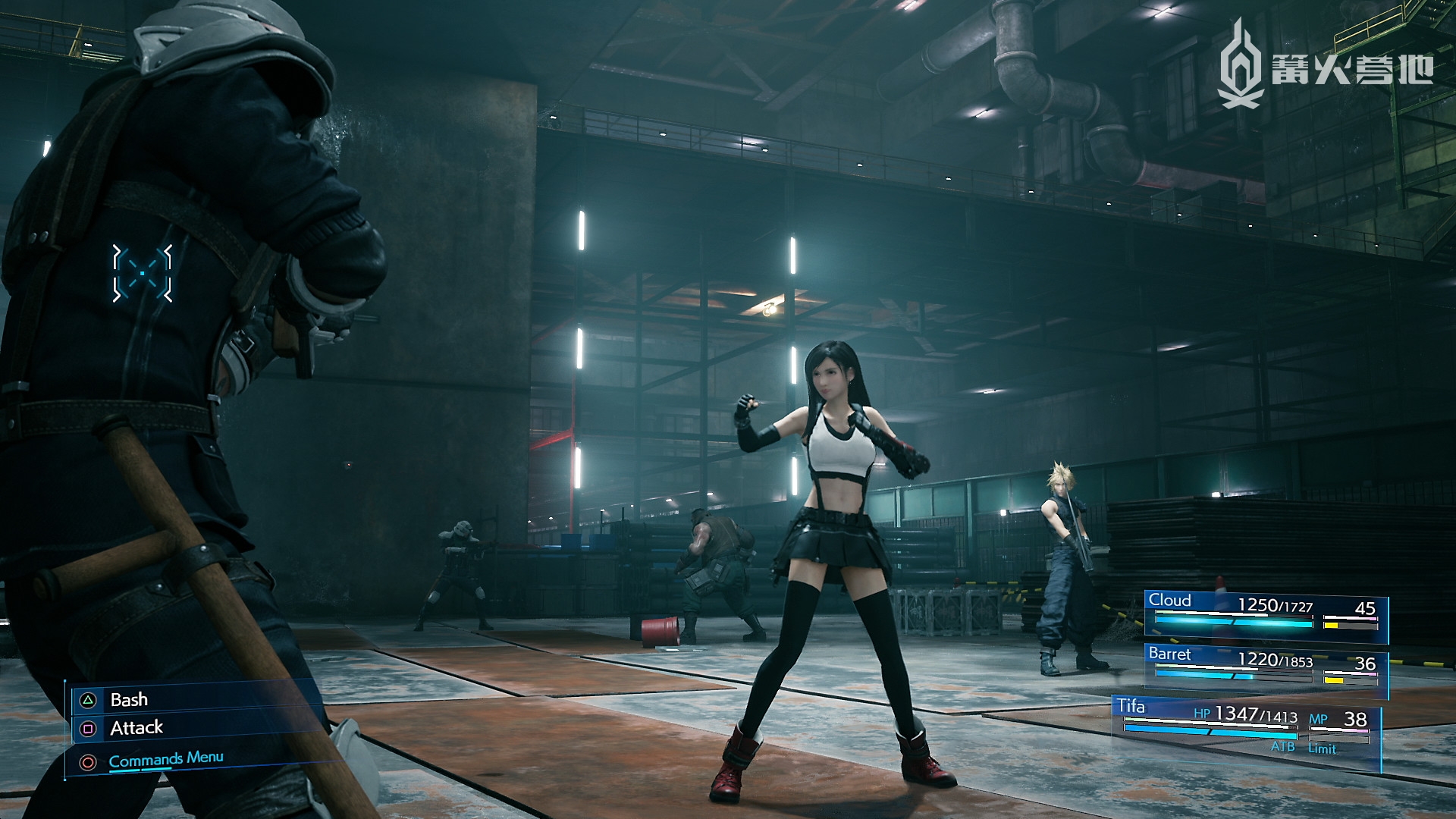 除了 ATB 系统外,每名角色的战斗模式还做出了差异化处理。克劳德有攻守平衡的「进攻模式」和强调输出的「勇猛模式」,按 △ 键随时可以切换,先在普通模式下将敌人击倒,趁其倒地无法反击时切换成「勇猛模式」打一套连招是克劳德的基本操作。比较有趣的是巴雷特,他的武器有远程的枪炮和近战的铁器两种,两种武器下的战斗风格和固有技能是完全不同的。当然这也导致了一些小问题出现,比如小队里是克劳德、蒂法、巴雷特三人,而 BOSS 则是个飞天系,此时如果玩家给巴雷特装备的是近战武器的话,那画面就相当窒息了……