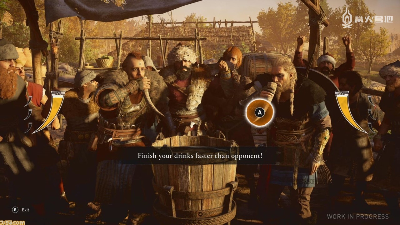 对骂是维京人的传统竞技,类似于现代的说唱对决。听到对方侮辱性的语言后,玩家要选出能够回应侮辱的语句来回敬对方。