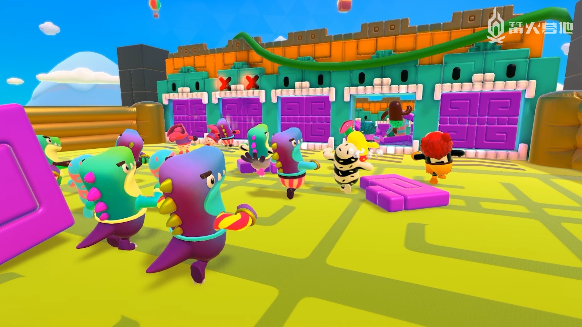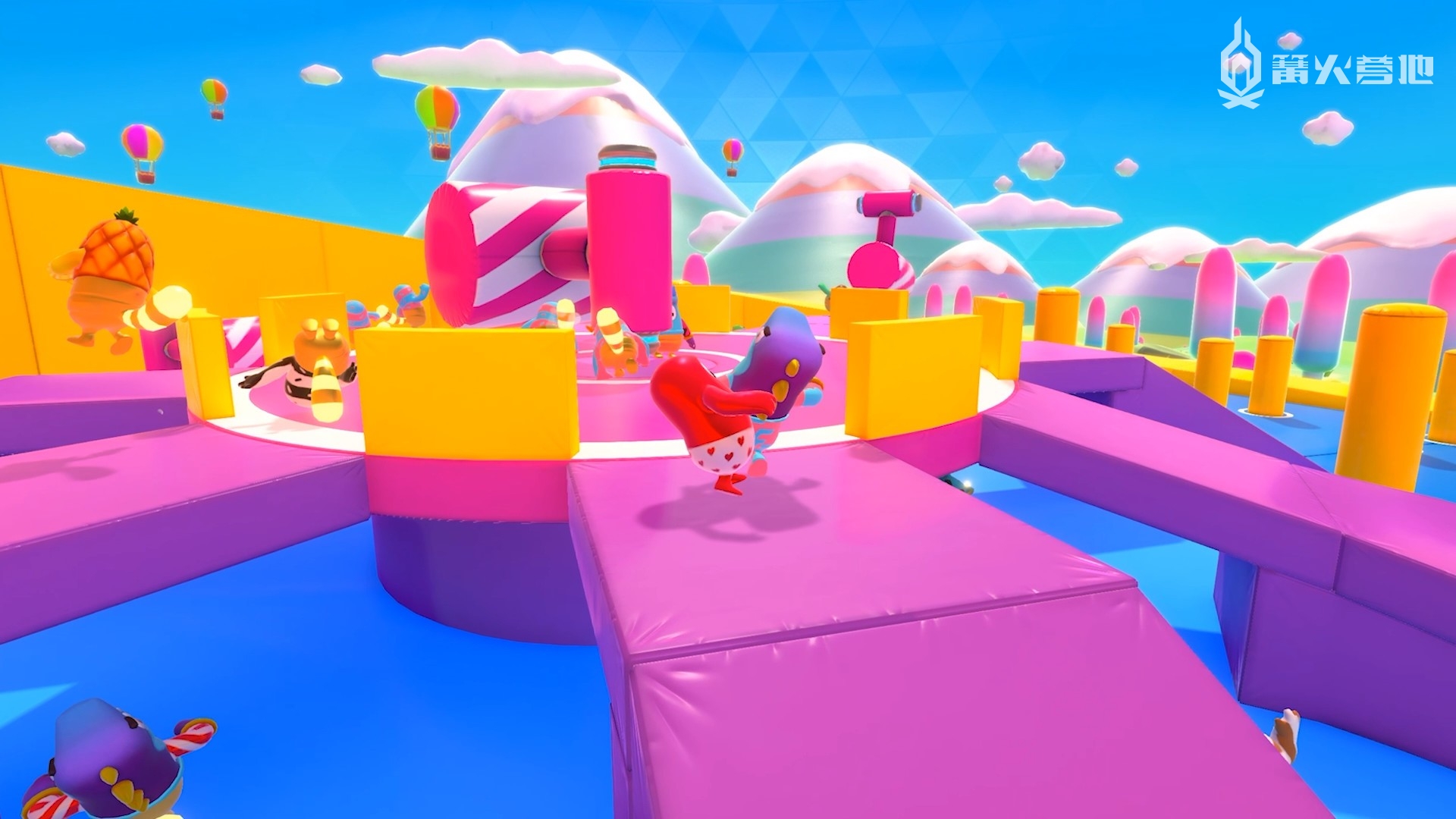 其它关卡则是最典型的障碍赛,玩家至少得跑出前三十以内的佳绩才继续闯关。你可以将本作设想为一个以公司友好团建为主题的大逃杀游戏。