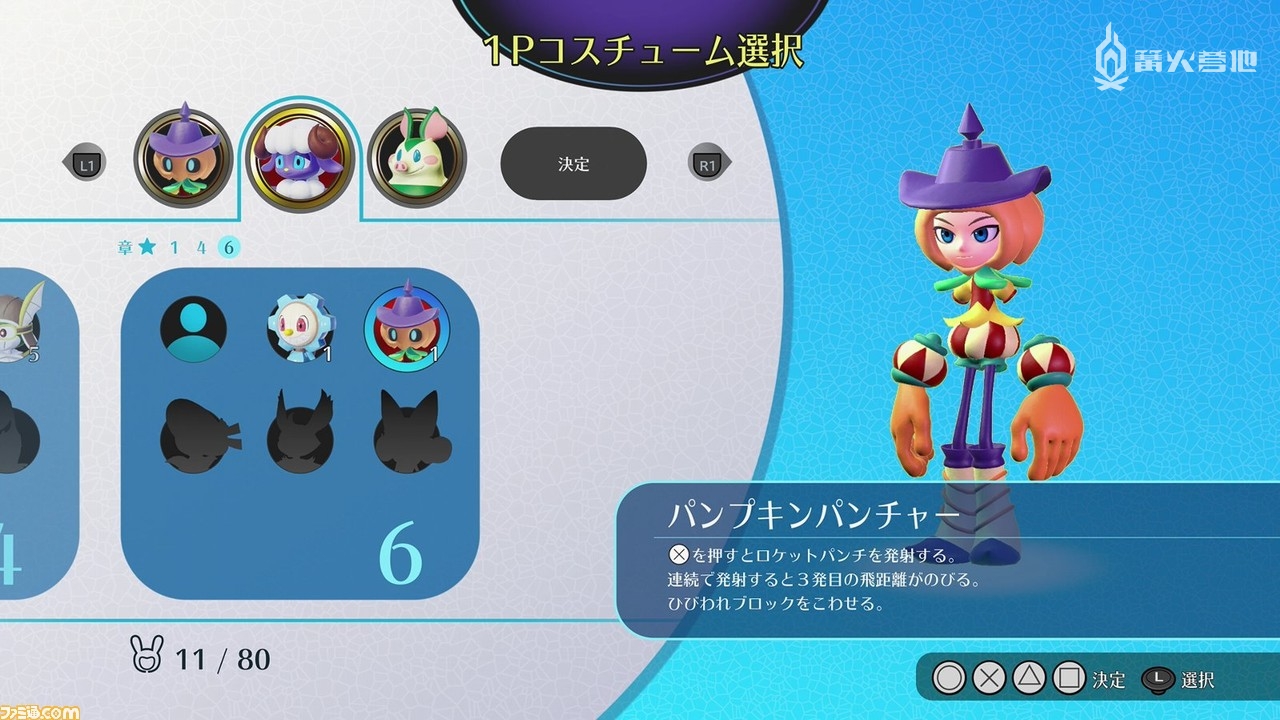 顺便一提,玩家可以携带已收集到的服装挑战关卡,只要运用得当,或许还能前往使用原本该关卡内的服装所无法到达的地方。另外,在探索新场所时所必需的服装并非仅有特定的一件,而是「只要持有任意一件服装就可以前行」。如此一来,服装的选择也被赋予了解谜的要素。