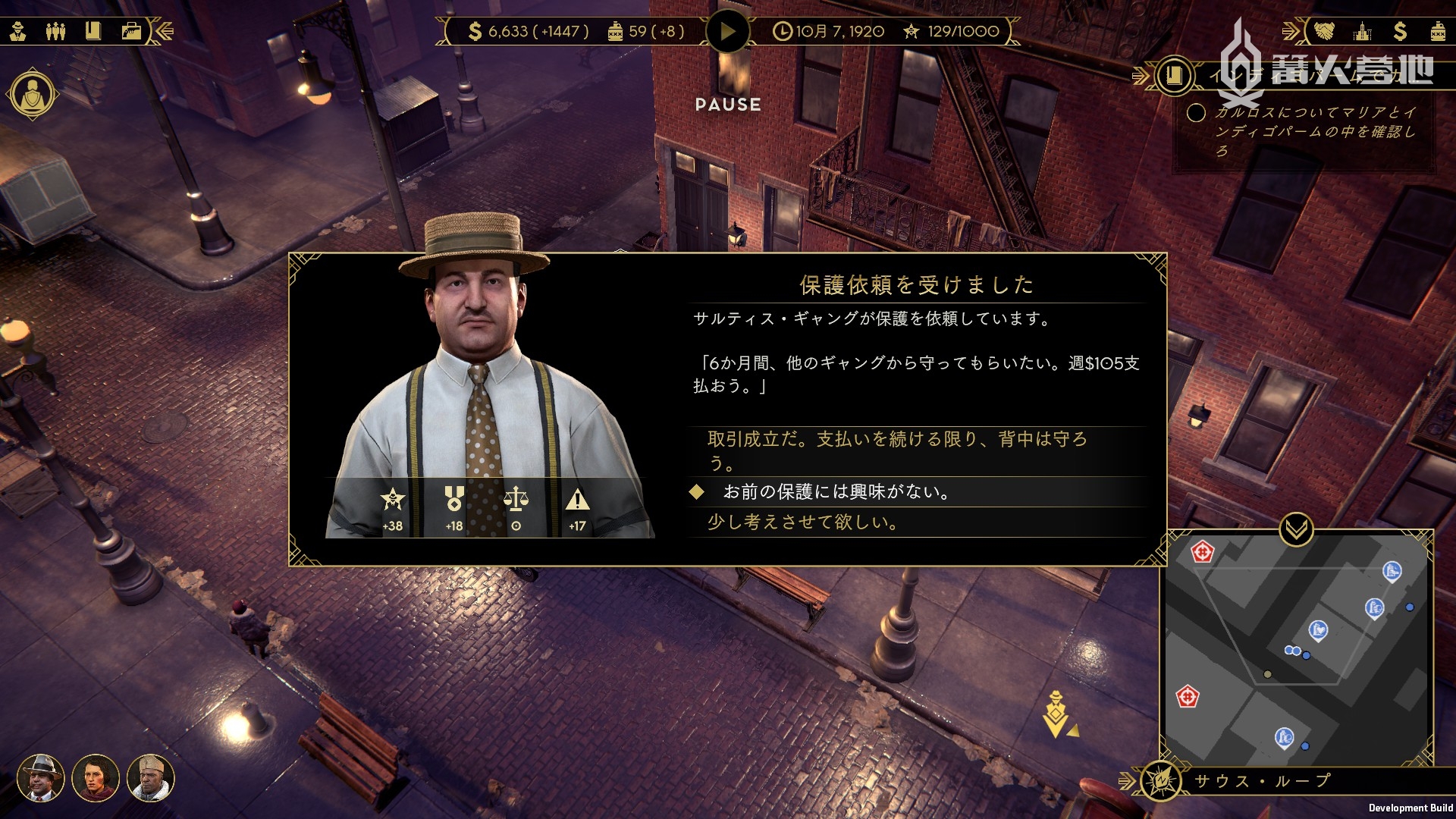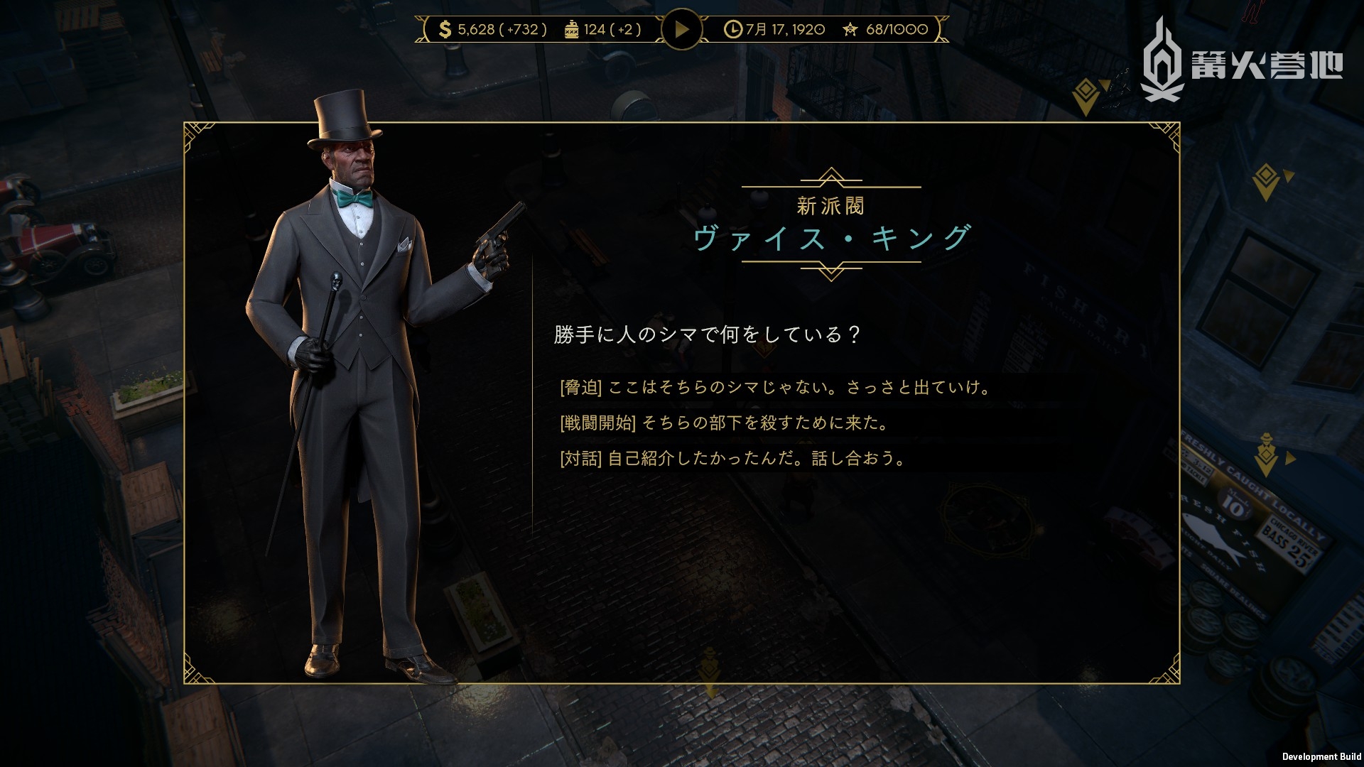 在芝加哥城闲逛,有时会遇到对手派系的成员。初次遭遇时,玩家可以选择威胁、发起战争或是对话。若是选择对话,可以一定程度了解到其他派系的情况,可以选择暂时合作,或是拒绝。