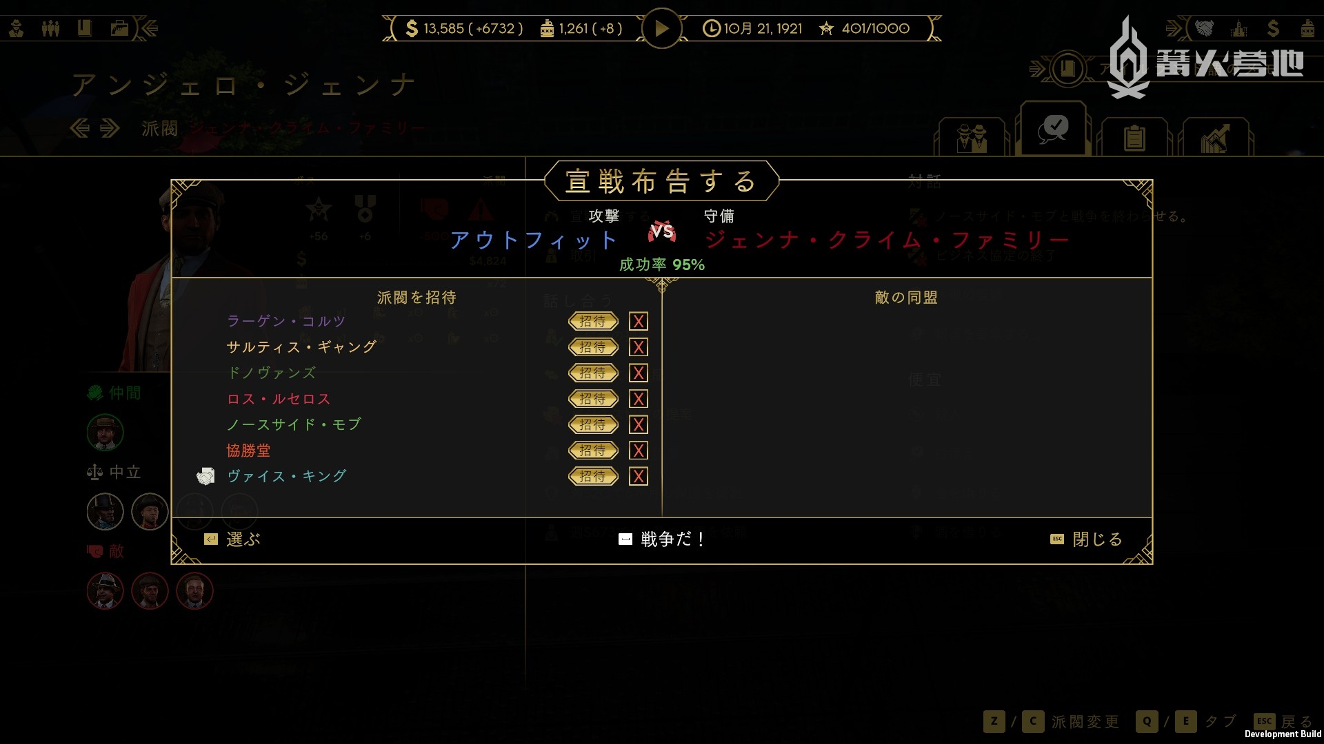 ▲宣战后会显示成功率,可以邀请其他派系加入。共斗的话,可以和同盟的派系一起袭击敌方据点。