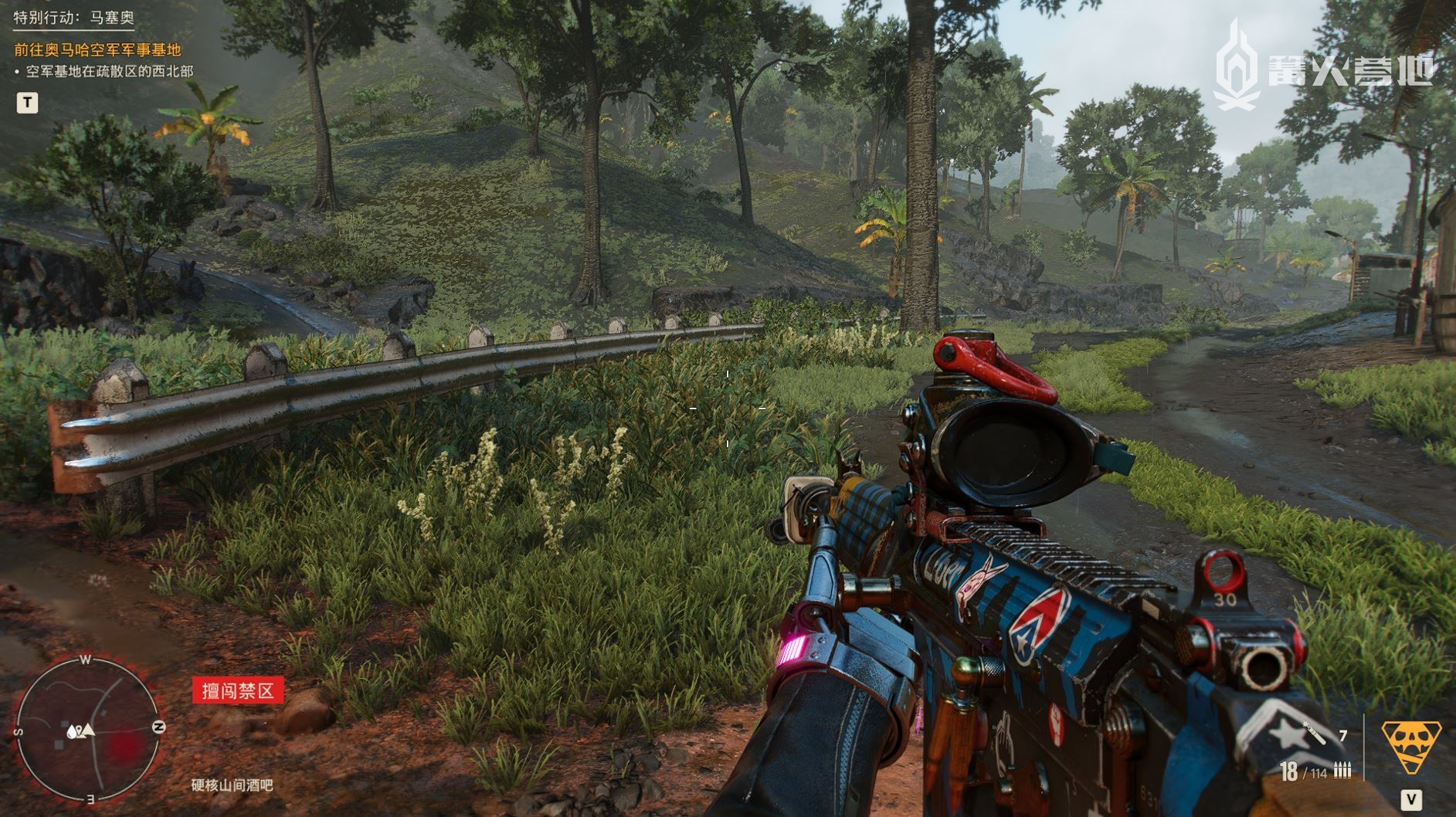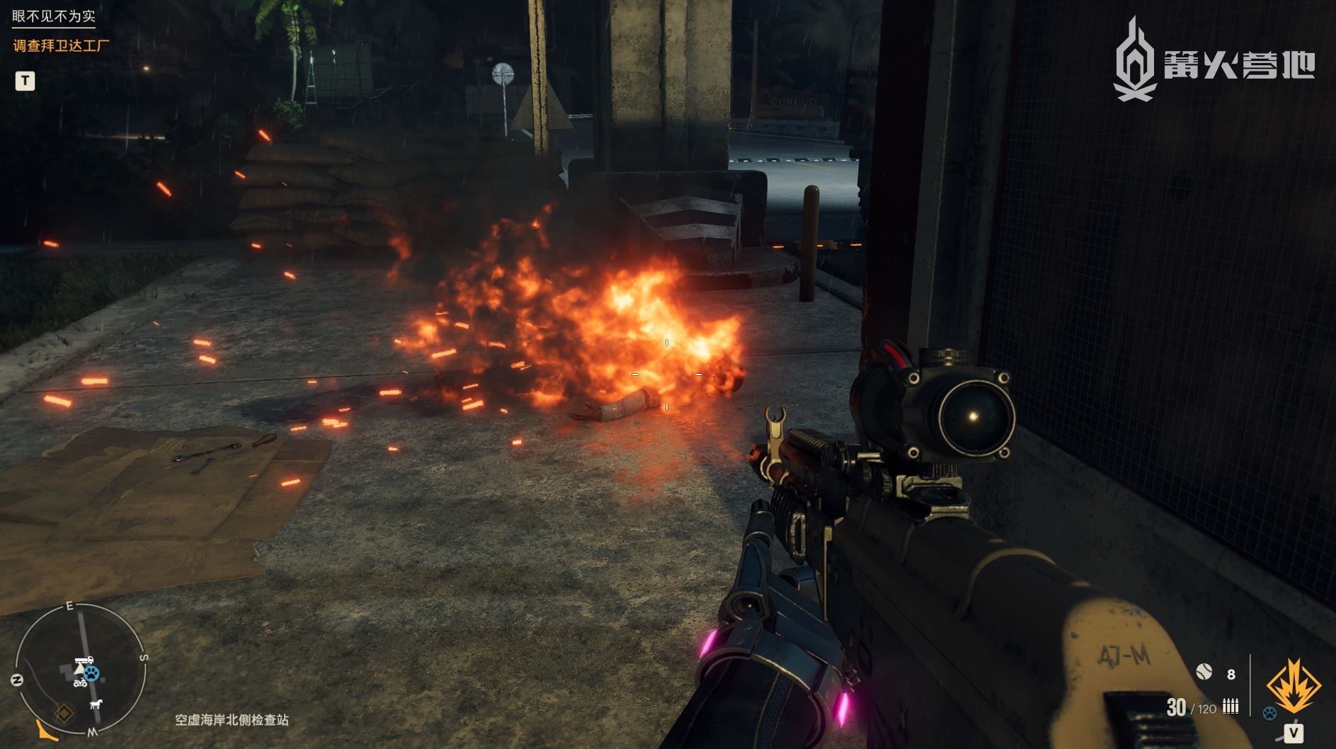 在如此庞大的武器体系之下,《孤岛惊魂 6》的战斗设计却意外的简洁和直接。首先游戏引入了弹药属性以及对应的弱点系统,6 种子弹分别是标准、穿甲、杀伤、毒素(引发敌人互伤)、爆炸(载具特效)和燃烧(范围持续伤害),不同的敌人除了有等级强弱以外,还会因为穿着的装备不同而形成不一样的弱点,例如戴头盔、穿防弹衣的重装敌人用标准子弹攻击基本不会掉血,但使用穿甲弹哪怕打在钢盔、胸腹部也能造成几乎秒杀的效果,只要不是去超过自身等级过多的区域作死,整体而言TTK(击杀时间)都相当短。