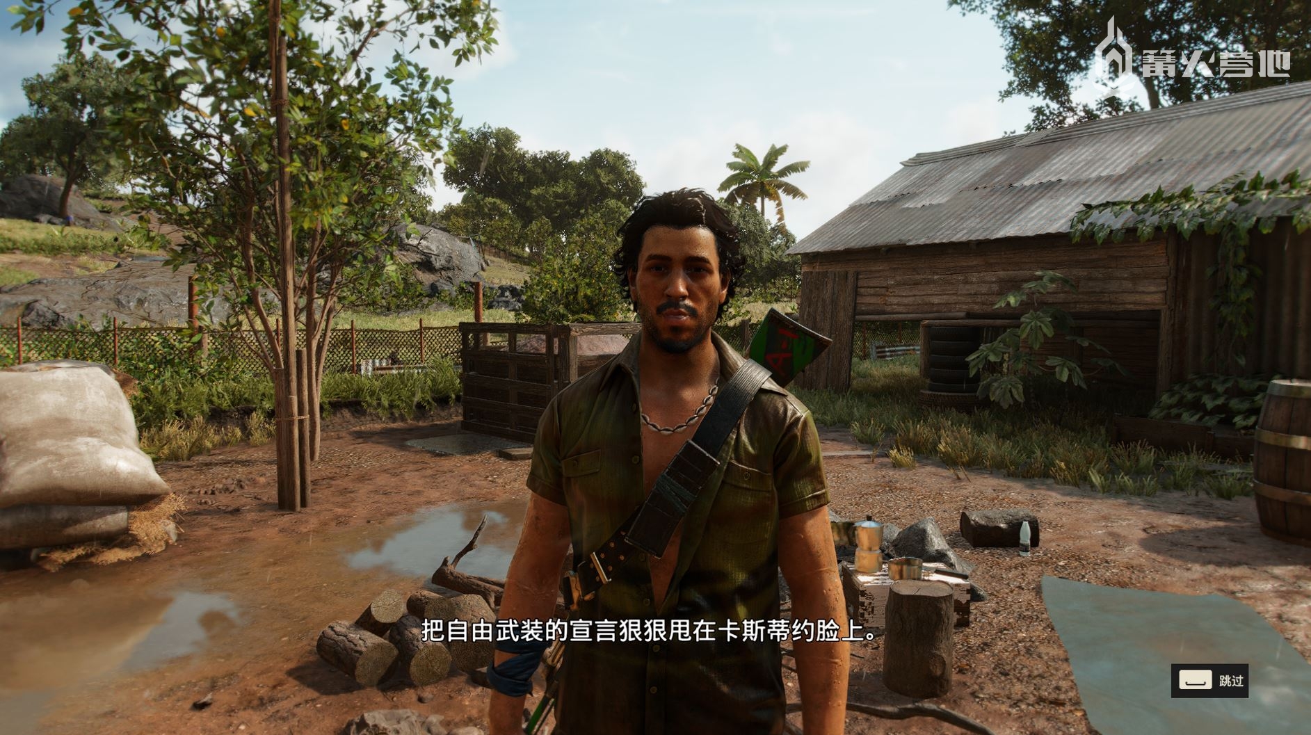 我第一次看到《孤岛惊魂 6》故事设定的时候,脑子里只浮现出四个字 —— 要素齐全。毕竟在真实的历史时空里,中南美洲土地上曾经爆发过轰轰烈烈的游击战争,留下了许多英雄人物与独裁者斗智斗勇的现成故事,这些都可以成为《孤岛惊魂 6》的素材来源,让游戏的虚拟内容能够有一个相对真实和厚重的基座,例如武器装备、角色背景、事件设定等等,结合夹杂着不少西班牙语单词的英文对白以及独特自然风光,很容易将玩家的情绪带入游戏的世界里。