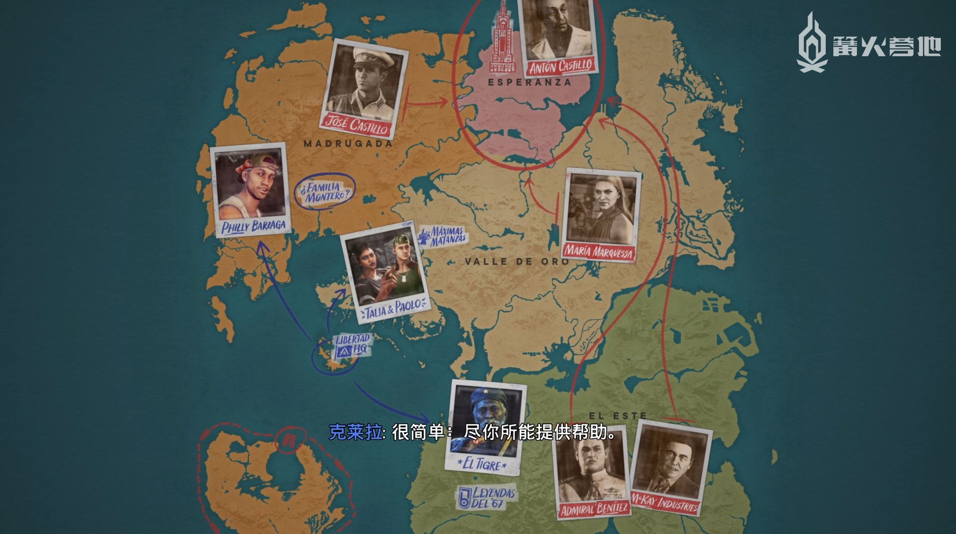 当然游戏故事还是进行了一些具有一定独创性的改造,例如虚构国家雅拉的烟草植物提取物被用来制作一种名叫「卫若威」的划时代抗癌特效药,这给了独裁者安东·卡斯蒂约为所欲为的统治态度以及丰厚财力一个合理的解释,另外他和儿子迭戈之间截然不同的理念也是游戏从开场就留给玩家的巨大悬念,相当于在常见的「反抗暴政」主线故事之外埋下一条具有个人感情色彩的支线,让故事有更强的张力和不同的吸引点。