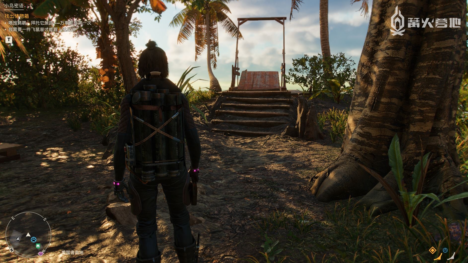 曾经在预告片里给我留下深刻印象的「破敌背包」兼具华丽度和巨大的威力,基本设计原理和《战神》里奎托斯攒满怒气之后进入斯巴达之怒状态的效果类似,时间流逝和普攻都可以给破敌背包补充能量,充满之后就能释放威力巨大的连射导弹、毒气弹等范围攻击,是对付敌方坦克、据点的绝佳手段,配合远视功能和敌人标记功能,能够针对特定目标在远处给予意料之外的打击,兼具功能性和极佳的观赏度,同样可以在工作台消耗素材升级,总的来讲十分好用的,关键时刻就靠这东西保命或是干掉拦路的硬骨头。