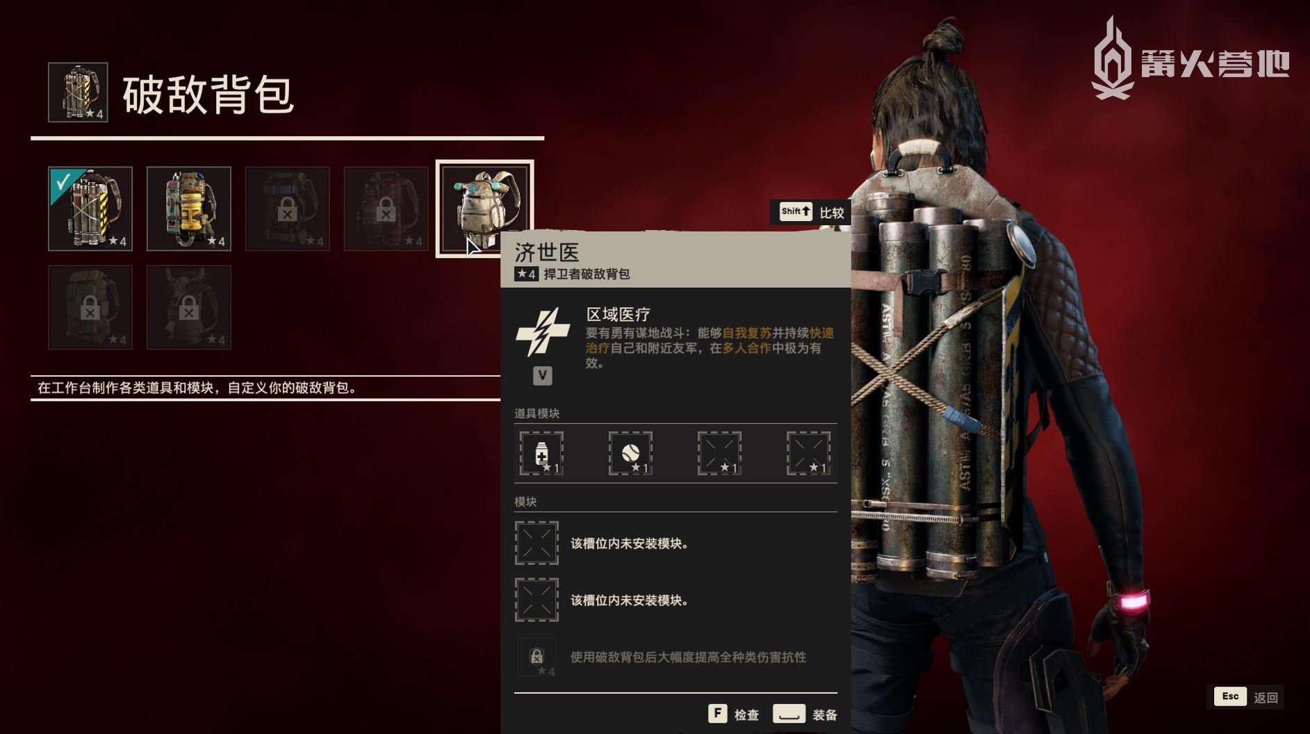 这些野路子武器也都有各自独立的功能模块可供升级,包括单纯的增加备弹量、提升充能效率等等,消耗的资源和主武器既有重叠也有交错,所不同的地方在于 7 种背包的所有模块都是通用的,可以节省不少研发资源。