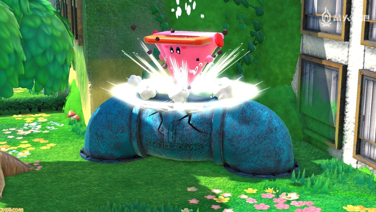 因为卡比可以通过吸入各种敌人来使用复制能力,所以即便能够变形成新的世界中的物品也并不奇怪。就像根据不同的敌人使用不同的复制能力一样,一旦熟练掌握了塞满嘴变形的诀窍,笔者立刻就迷上了这个大大拓展了攻击方式的动作。