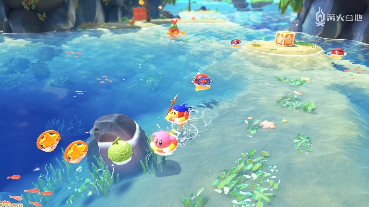 新世界中除了有初始的冒险区域草原建筑之外,还有着海岸、荒野等多种多样的世界。在这个 3D 的新世界中,玩家可以随心所欲地在 360 度任意方向运用卡比熟悉的吸入、吐出和复制的能力。