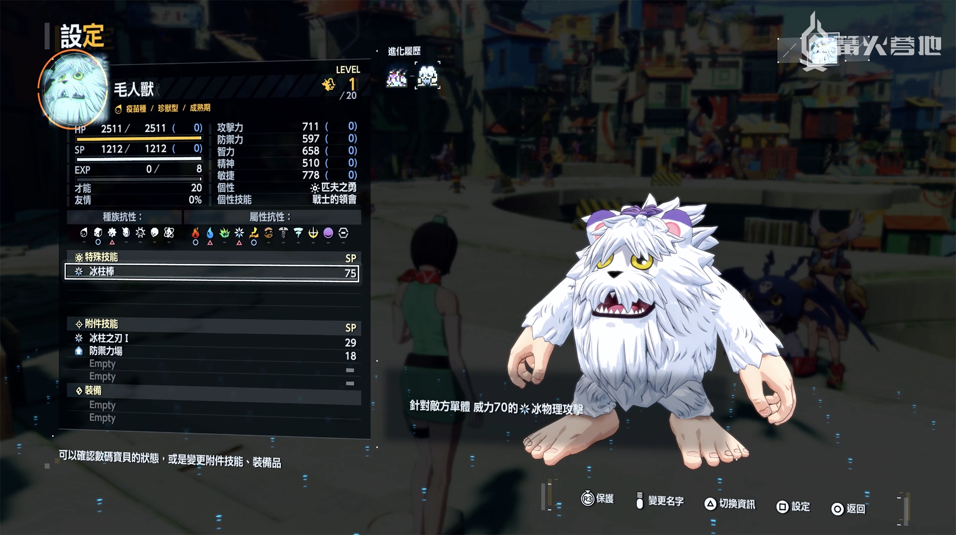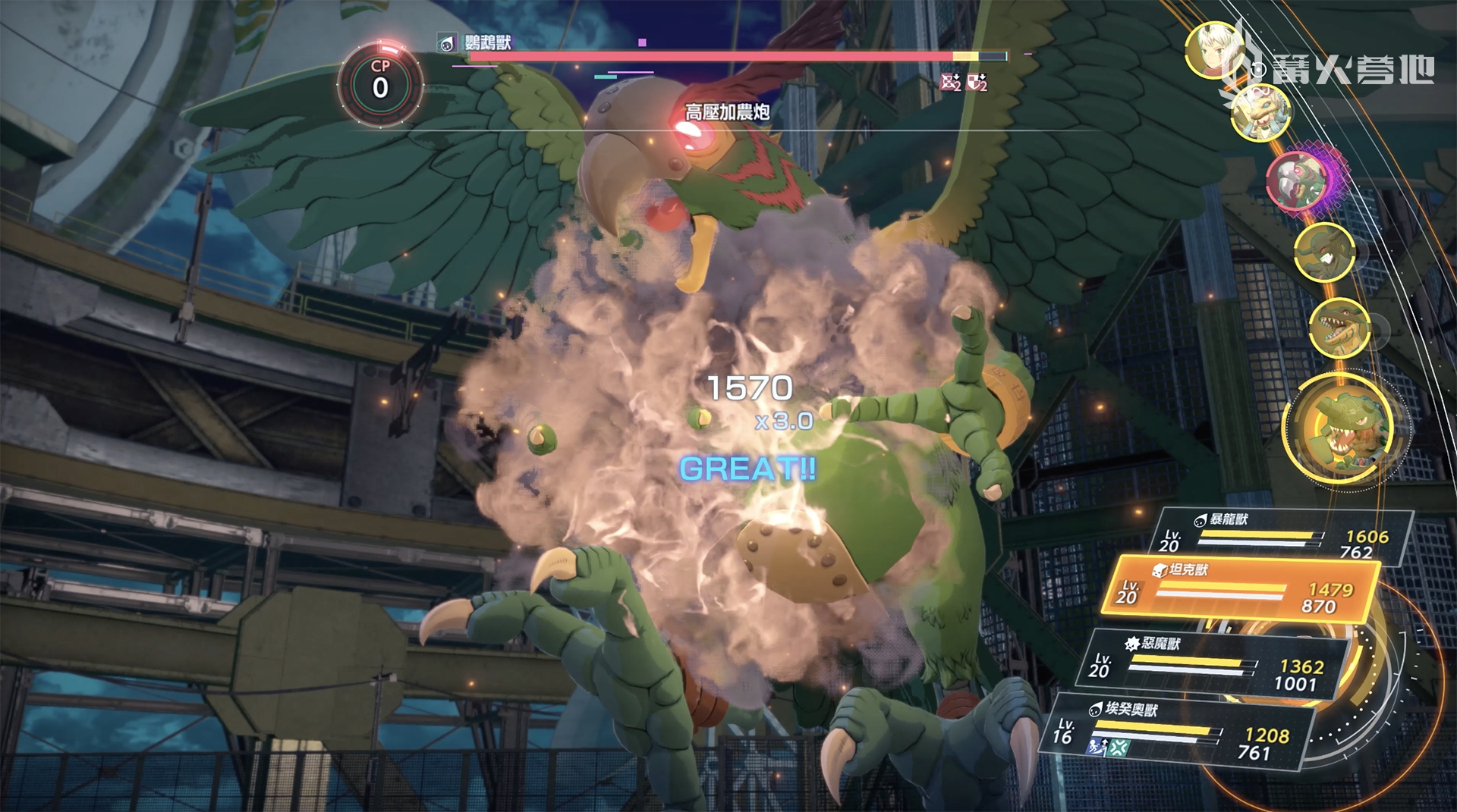 经过几个轮次后,我发现存档中的预设队伍其实不太适合与这只鹦鹉兽对战,果断利用更换功能将后备军中的坦克兽召唤进场。坦克兽有个非常厉害的技能「高压加农炮」,虽然会令自身在下回合无法行动,却可以对鹦鹉兽造成 3 倍加成的伤害,威力惊人。
