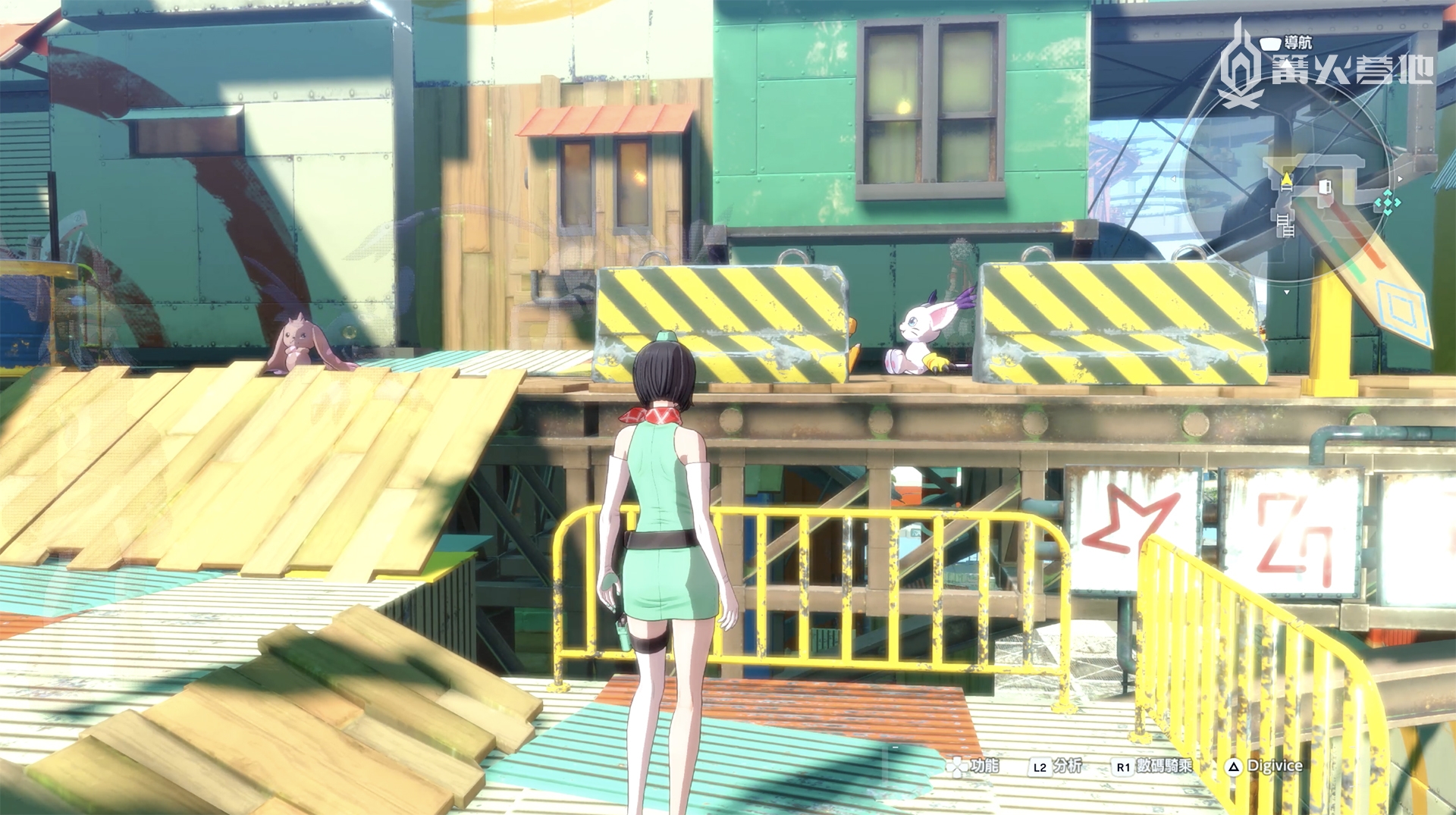 本次试玩可以选择的存档位置有两个。第一个存档进度在游戏的重要地区中央镇。在这里我们可以操作主角与数码宝贝一同进行探索。