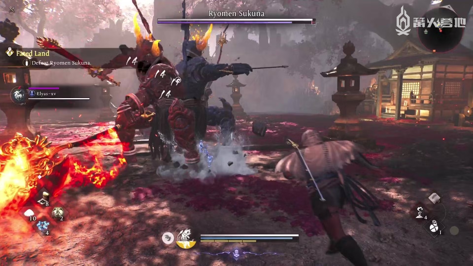 在使用忍者风格时,你还可以使用各种射程很远的“忍术”,例如雷击术或者毒手里剑术。武士和忍者风格都可以使用“阴阳术”提供的主动和被动能力,而为了使用阴阳术,你需要通过击杀敌人获取魂核。