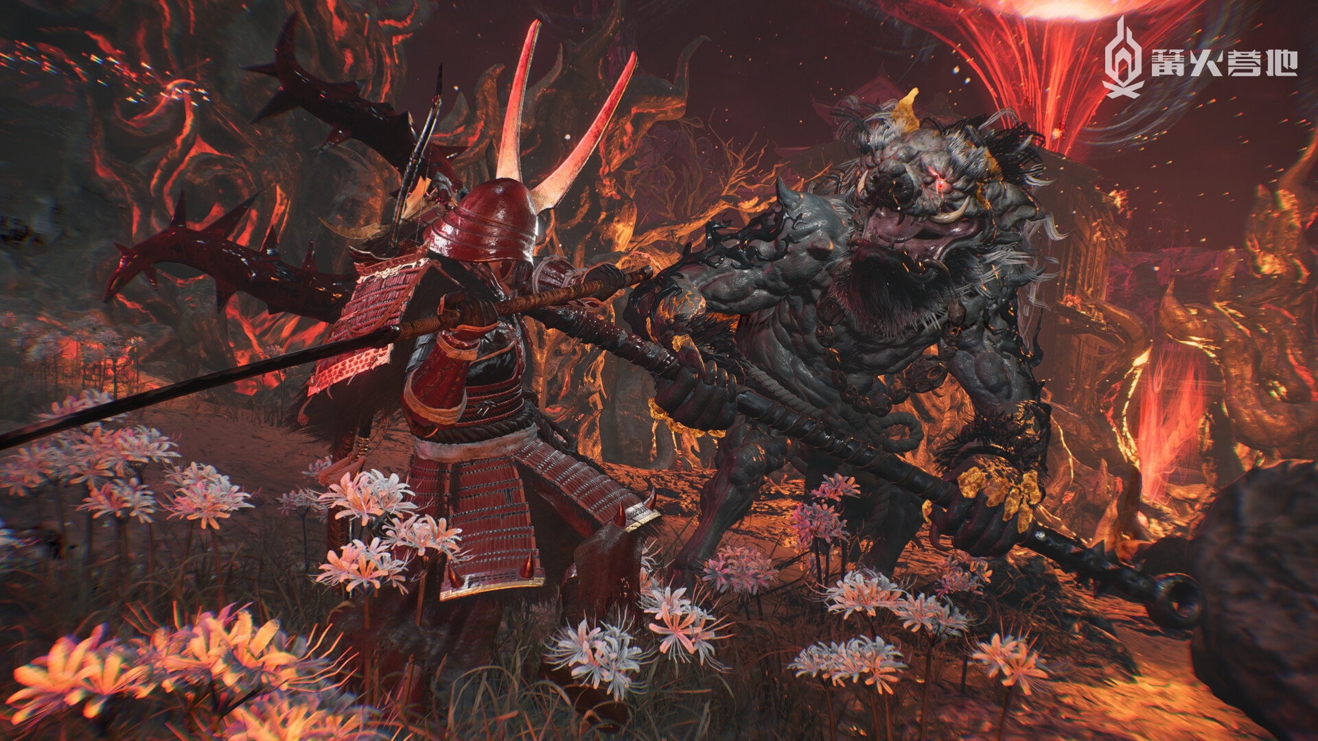 在完成《仁王 3》的教程后,本作的主角、未来的幕府将军“德川竹千代”迈入了一片被染成血红色的开阔世界。一只巨大的魔眼高悬于空中,垂下了几只狰狞的利爪,显然它就是这片诡异景象的罪魁祸首。