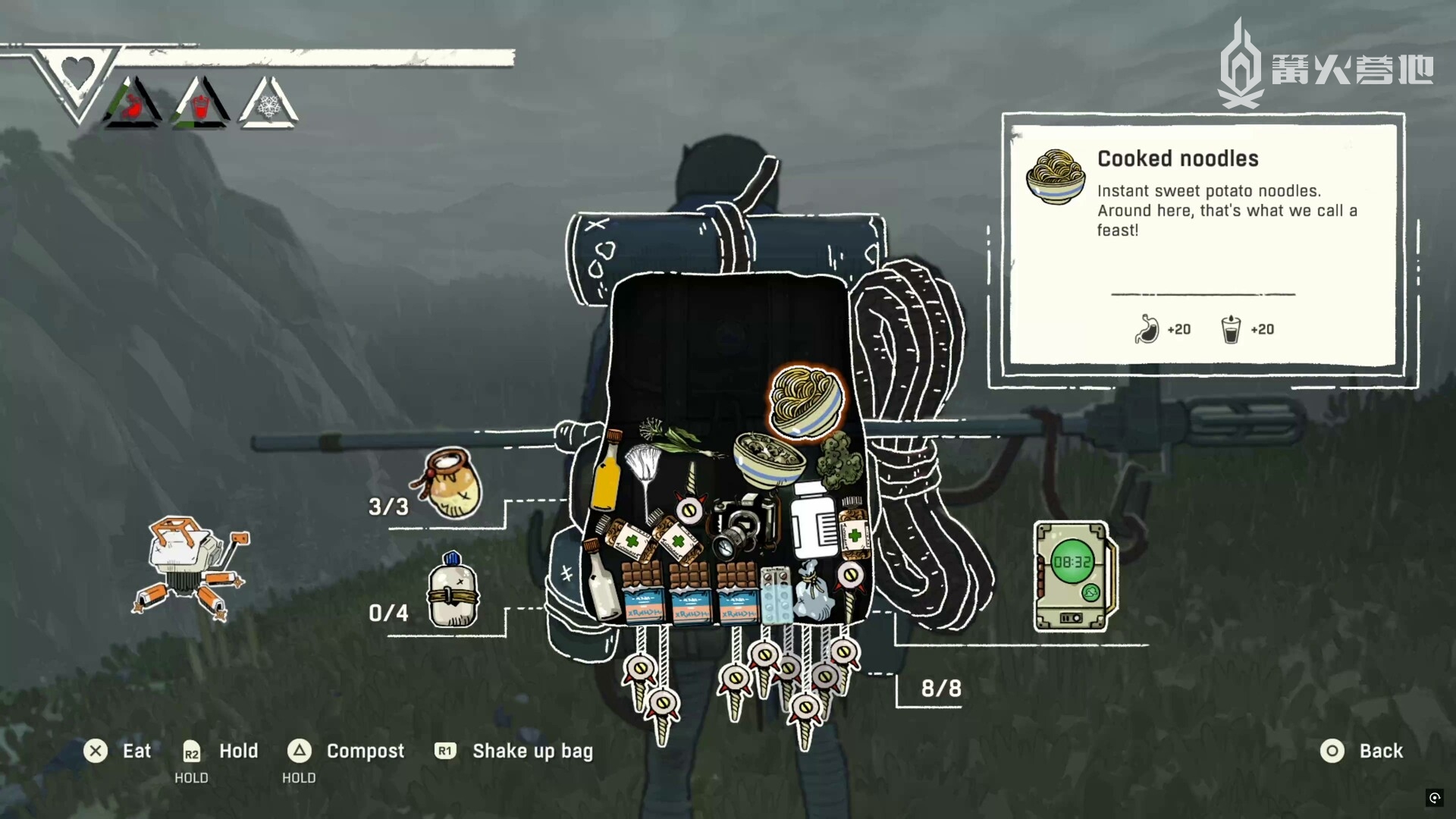 不仅如此,艾瓦背包里预先准备好的物资也是完全不够用的(研究速通玩法的话又是另外一回事了),必须四处寻找水源、采摘野生植物,或者回收先驱者们留下的物资才能尽力维持生存。